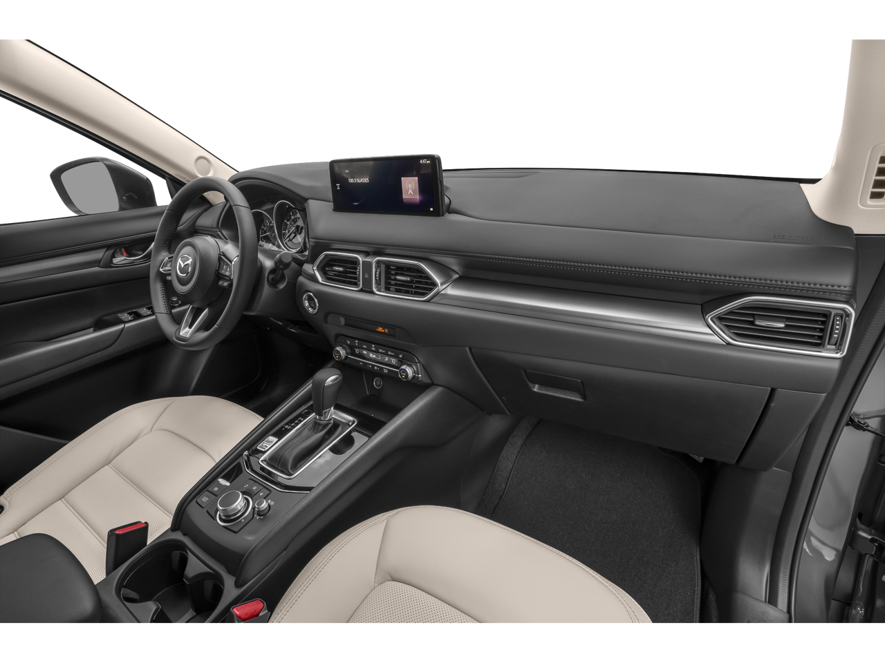 4-Wheel Disc Brakes, 6 Speakers, ABS brakes, Air Conditioning, All-Weather Floor Mats, Alloy wheels, AM/FM radio, AppLink/Apple CarPlay and Android Auto, Auto High-beam Headlights, Auto-dimming Rear-View mirror, Automatic temperature control, Brake assist, Bumpers: body-color, Cargo Tray, Delay-off headlights, Driver door bin, Driver vanity mirror, Dual front impact airbags, Dual front side impact airbags, E911 Automatic Emergency Notification, Electronic Stability Control, Emergency communication system: MAZDA CONNECT, Exterior Parking Camera Rear, First Aid Kit, Four wheel independent suspension, Front anti-roll bar, Front Bucket Seats, Front Center Armrest w/Storage, Front dual zone A/C, Front reading lights, Fully automatic headlights, Garage door transmitter: HomeLink, Heated Front Bucket Seats, Heated front seats, Illuminated entry, Infotainment System Voice Command, Leather Seat Trim, Leather Shift Knob, Leather steering wheel, Low tire pressure warning, Memory seat, Multifunction Commander Control, Occupant sensing airbag, Outside temperature display, Overhead airbag, Overhead console, Pandora, Panic alarm, Passenger door bin, Passenger vanity mirror, Power door mirrors, Power driver seat, Power Liftgate, Power moonroof, Power passenger seat, Power steering, Power windows, Radio Broadcast Data System Program Information, Radio data system, Radio: AM/FM/HD Audio System, Rain sensing wipers, Rear anti-roll bar, Rear reading lights, Rear seat center armrest, Rear window defroster, Rear window wiper, Remote keyless entry, Retractable Cargo Cover, Rhodium White Metallic Paint, SMS Text Msg Audio Delivery & Reply, Speed control, Speed-sensing steering, Split folding rear seat, Spoiler, Steering wheel mounted audio controls, Tachometer, Telescoping steering wheel, Tilt steering wheel, Traction control, Trip computer, Turn signal indicator mirrors, Variably intermittent wipers, Wheels: 17 x 7J Aluminum Alloy.