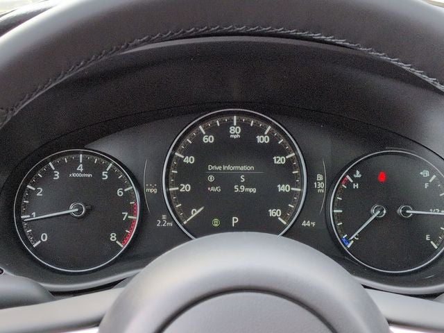 4-Wheel Disc Brakes, 8 Speakers, ABS brakes, Air Conditioning, Alloy wheels, AM/FM radio, AppLink/Apple CarPlay and Android Auto, Auto High-beam Headlights, Automatic temperature control, Brake assist, Bumpers: body-color, Delay-off headlights, Driver door bin, Driver vanity mirror, Dual front impact airbags, Dual front side impact airbags, Electronic Stability Control, Emergency communication system: MAZDA CONNECT, Exterior Parking Camera Rear, Front anti-roll bar, Front Bucket Seats, Front Center Armrest, Front dual zone A/C, Front reading lights, Front wheel independent suspension, Fully automatic headlights, Half Leatherette Seat Trim, Heated door mirrors, Heated Front Bucket Seats, Heated front seats, Illuminated entry, Knee airbag, Leather Shift Knob, Leather steering wheel, Low tire pressure warning, Occupant sensing airbag, Outside temperature display, Overhead airbag, Overhead console, Panic alarm, Passenger door bin, Passenger vanity mirror, Power door mirrors, Power driver seat, Power Liftgate, Power moonroof, Power steering, Power windows, Radio data system, Radio: AM/FM/HD 8-Speaker Audio Sound System, Rain sensing wipers, Rear seat center armrest, Rear window defroster, Rear window wiper, Remote keyless entry, Speed control, Speed-sensing steering, Split folding rear seat, Spoiler, Steering wheel mounted audio controls, Tachometer, Telescoping steering wheel, Tilt steering wheel, Traction control, Trip computer, Turn signal indicator mirrors, Variably intermittent wipers, Weather Package, Wheels: 18 x 8J Aluminum Alloy Black Metallic Finish.