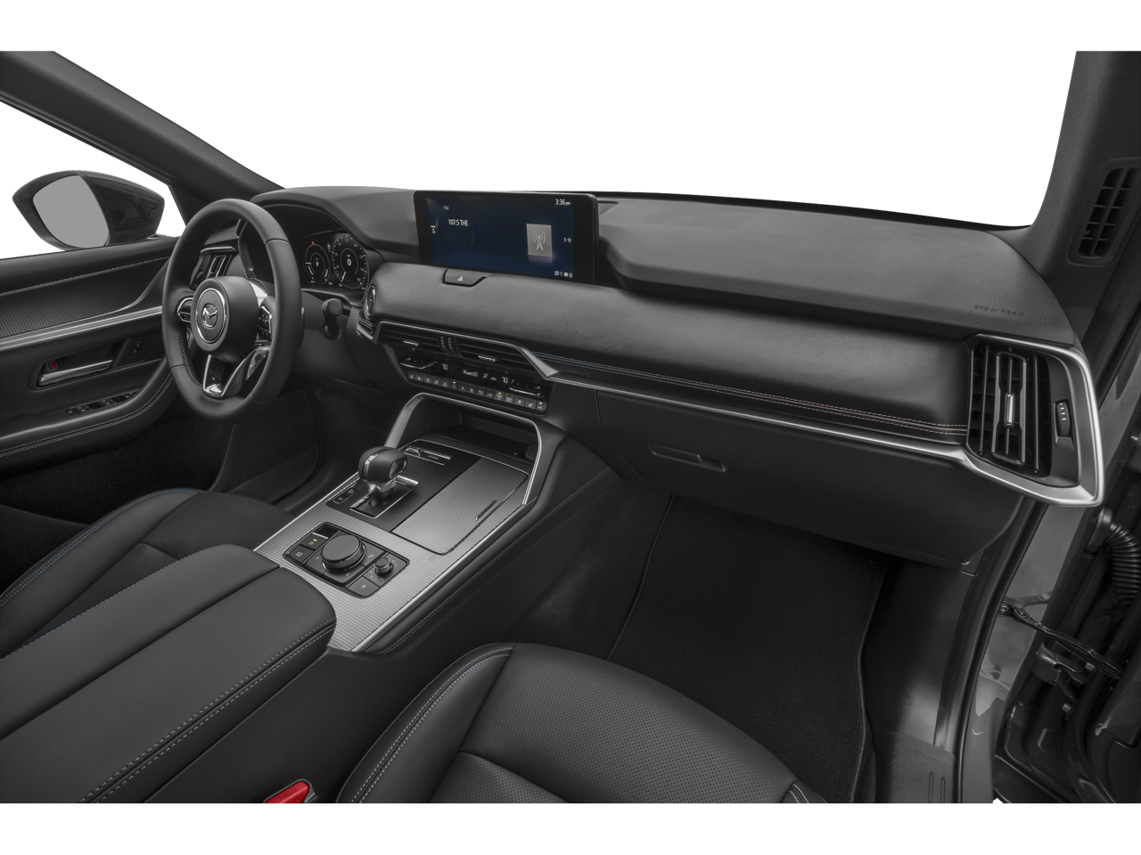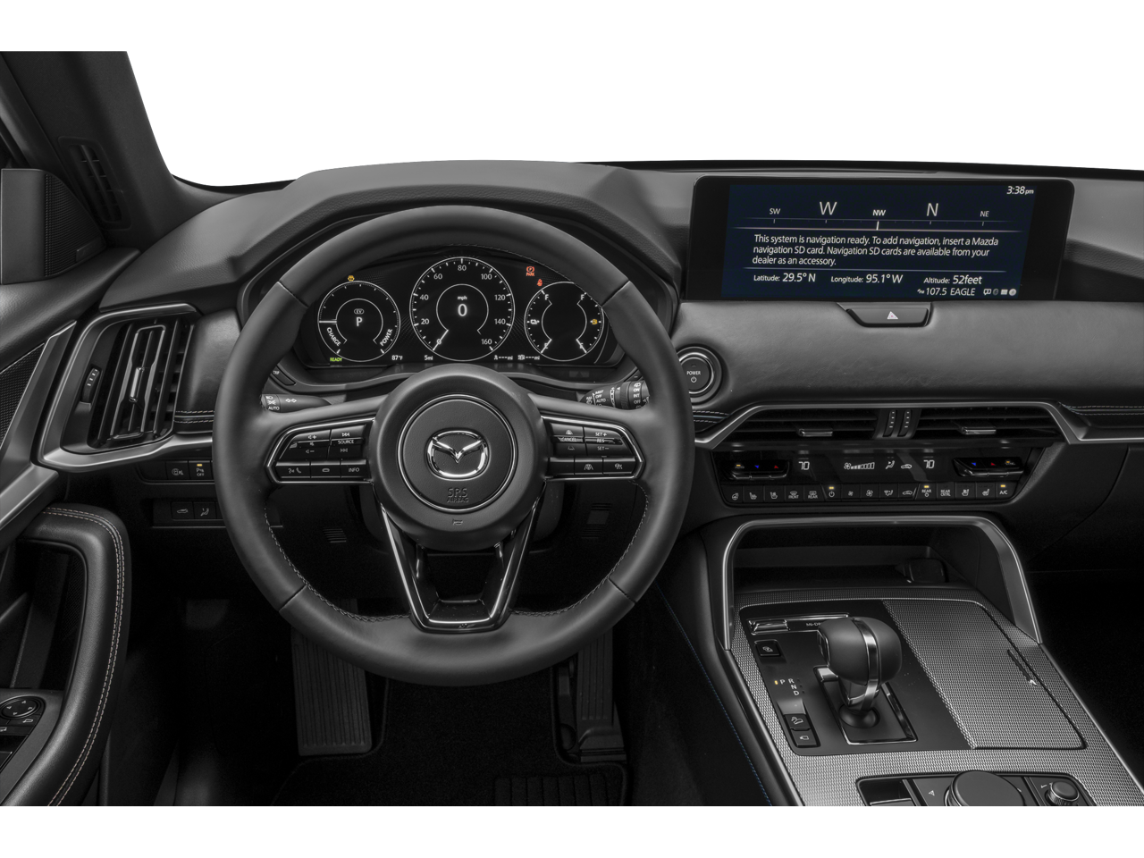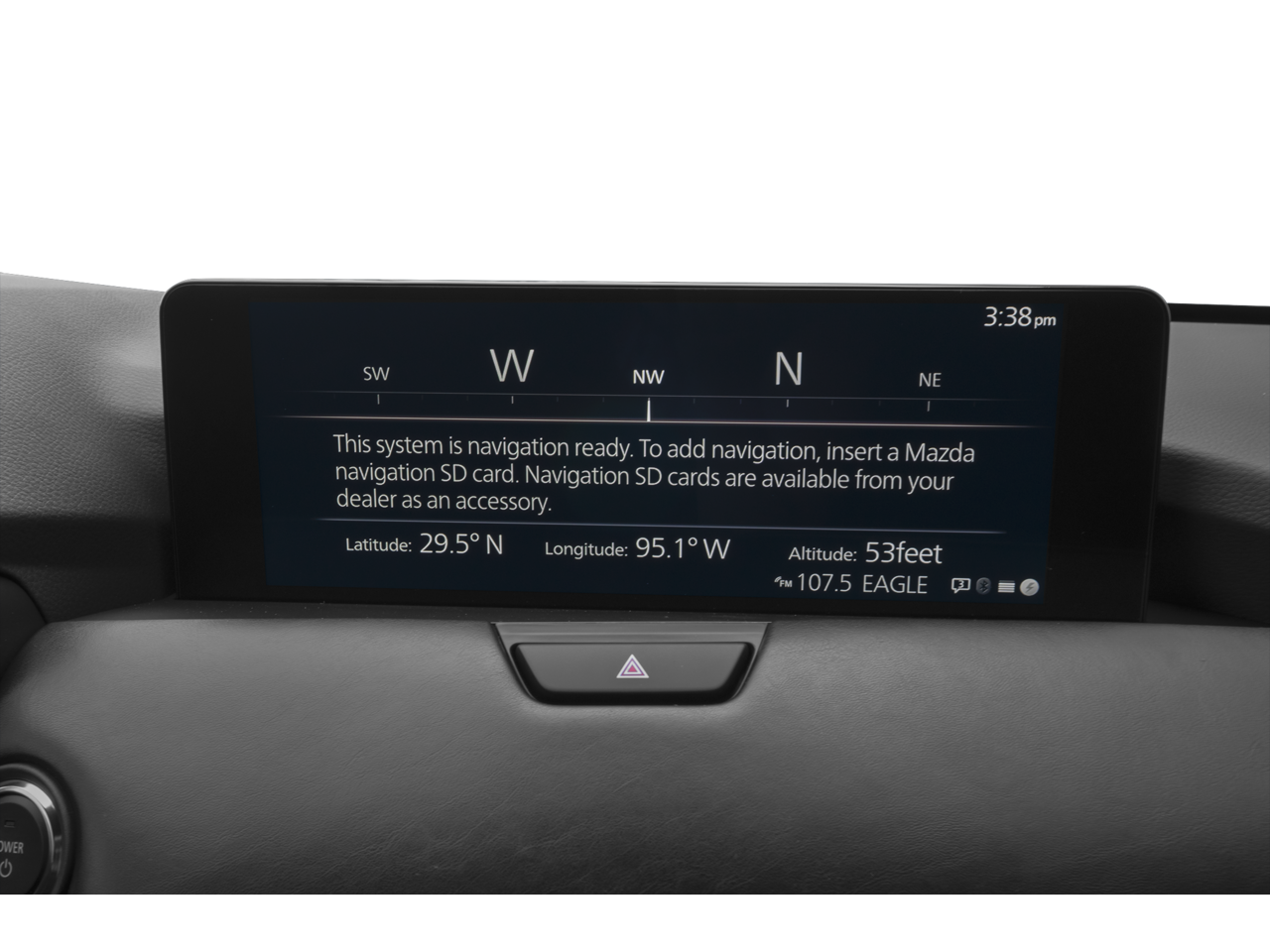 12 Speakers, 4-Wheel Disc Brakes, ABS brakes, Air Conditioning, Alloy wheels, AM/FM radio: SiriusXM, AppLink/Apple CarPlay and Android Auto, Auto High-beam Headlights, Auto-dimming door mirrors, Auto-dimming Rear-View mirror, Automatic temperature control, Black Lug Nuts and Black Wheel Locks, Brake assist, Bumpers: body-color, Cargo Storage Shelf, Compass, Delay-off headlights, Driver door bin, Driver vanity mirror, Dual front impact airbags, Dual front side impact airbags, E911 Automatic Emergency Notification, Electronic Stability Control, Emergency communication system: MAZDA CONNECT, Exterior Parking Camera Rear, Four wheel independent suspension, Front anti-roll bar, Front Bucket Seats, Front Center Armrest w/Storage, Front dual zone A/C, Front reading lights, Fully automatic headlights, Garage door transmitter: HomeLink, Heads-Up Display, Heated door mirrors, Heated front seats, Heated rear seats, Heated steering wheel, Heated/Ventilated Front Bucket Seats, Illuminated entry, Infotainment System Voice Command, Knee airbag, Leather Seat Trim, Leather Shift Knob, Leather steering wheel, Low tire pressure warning, Mazda Connected Services, Memory seat, Navigation system: MAZDA CONNECT, Occupant sensing airbag, Outside temperature display, Overhead airbag, Overhead console, Panic alarm, Passenger door bin, Passenger vanity mirror, Power door mirrors, Power driver seat, Power Liftgate, Power passenger seat, Power steering, Power windows, Premium Carpet Floor Mats, Radio Broadcast Data System Program Information, Radio data system, Radio: AM/FM with 8 Speaker Sound System, Rain sensing wipers, Rear air conditioning, Rear anti-roll bar, Rear reading lights, Rear seat center armrest, Rear window defroster, Rear window wiper, Remote keyless entry, SMS Text Msg Audio Delivery and Reply, Speed control, Speed-sensing steering, Split folding rear seat, Spoiler, Steering wheel mounted audio controls, Tachometer, Telescoping steering wheel, Tilt steering wheel, Traction control, Trip computer, Turn signal indicator mirrors, Variably intermittent wipers, Ventilated front seats, Wheels: 19 x 8J Aluminum Alloy, Zircon Sand Metallic Paint Charge.