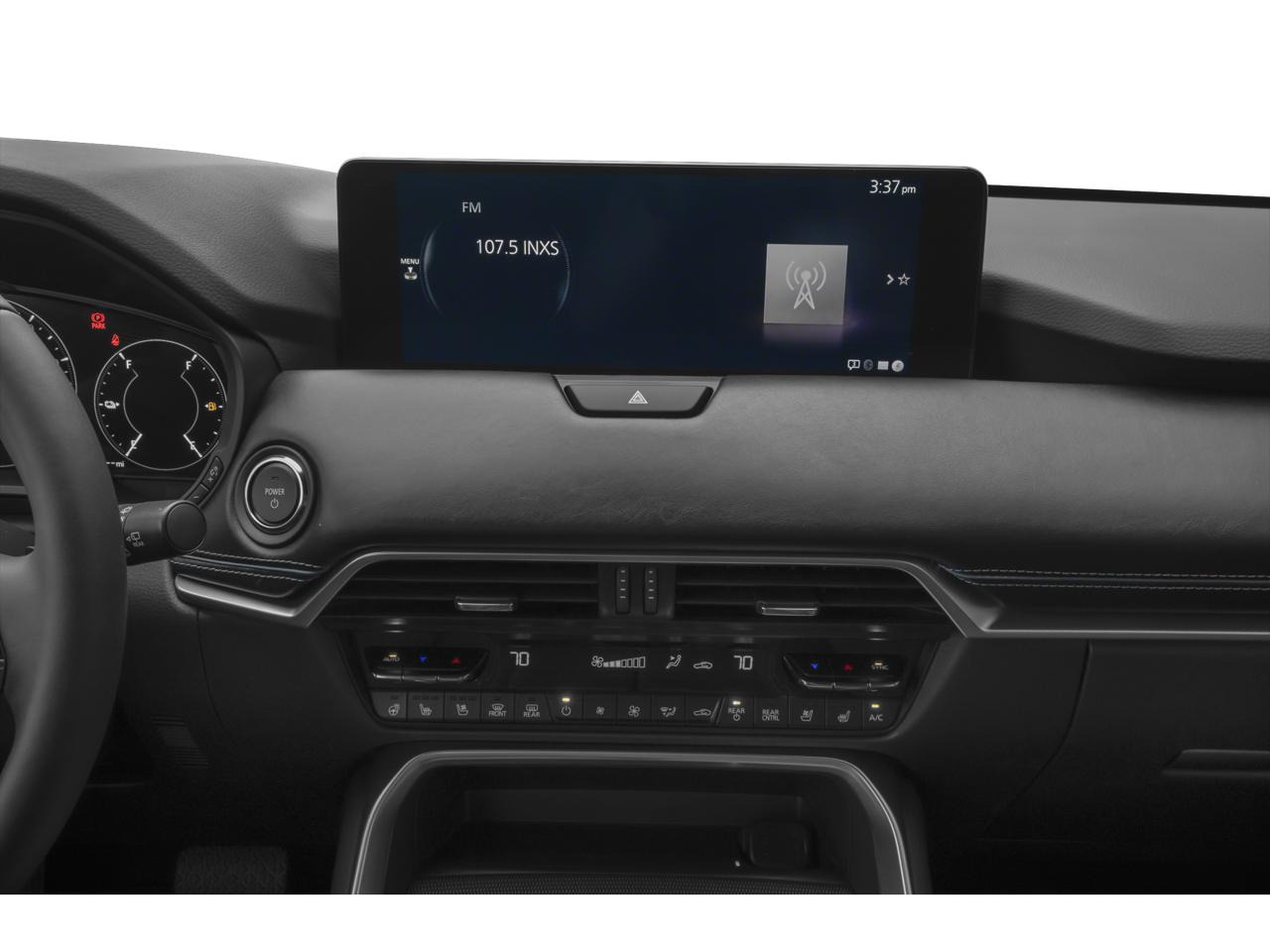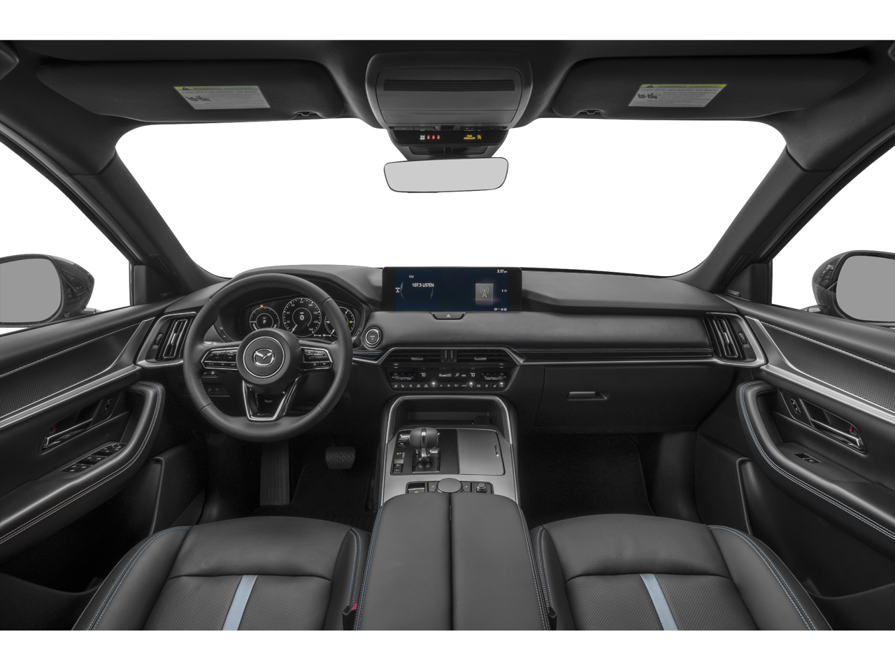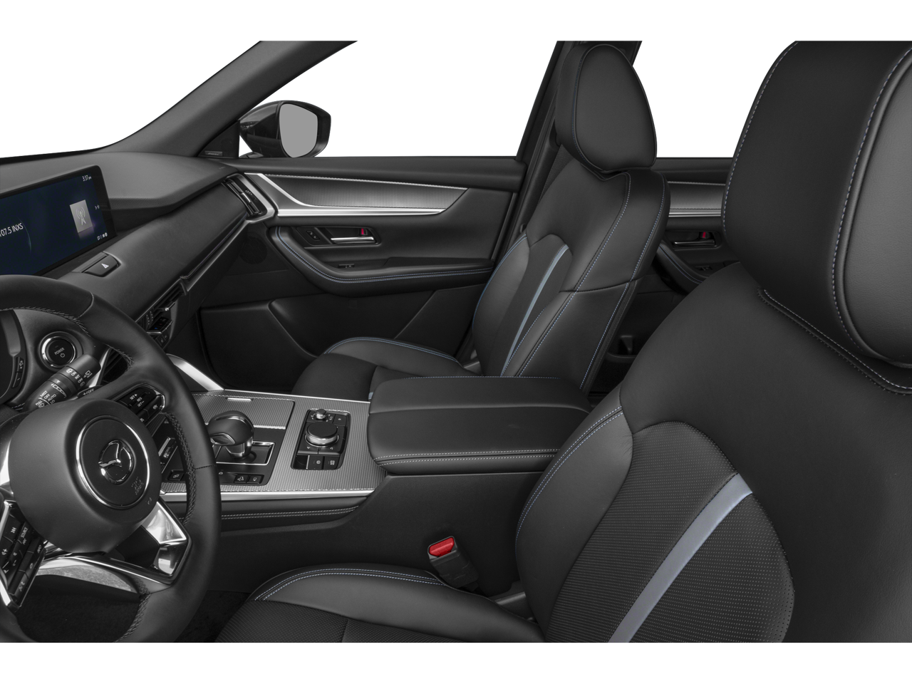 12 Speakers, 4-Wheel Disc Brakes, ABS brakes, Air Conditioning, Alloy wheels, AM/FM radio: SiriusXM, AppLink/Apple CarPlay and Android Auto, Auto High-beam Headlights, Auto-dimming door mirrors, Auto-dimming Rear-View mirror, Automatic temperature control, Black Lug Nuts and Black Wheel Locks, Brake assist, Bumpers: body-color, Cargo Storage Shelf, Compass, Delay-off headlights, Driver door bin, Driver vanity mirror, Dual front impact airbags, Dual front side impact airbags, E911 Automatic Emergency Notification, Electronic Stability Control, Emergency communication system: MAZDA CONNECT, Exterior Parking Camera Rear, Four wheel independent suspension, Front anti-roll bar, Front Bucket Seats, Front Center Armrest w/Storage, Front dual zone A/C, Front reading lights, Fully automatic headlights, Garage door transmitter: HomeLink, Heads-Up Display, Heated door mirrors, Heated front seats, Heated rear seats, Heated steering wheel, Heated/Ventilated Front Bucket Seats, Illuminated entry, Infotainment System Voice Command, Knee airbag, Leather Seat Trim, Leather Shift Knob, Leather steering wheel, Low tire pressure warning, Mazda Connected Services, Memory seat, Navigation system: MAZDA CONNECT, Occupant sensing airbag, Outside temperature display, Overhead airbag, Overhead console, Panic alarm, Passenger door bin, Passenger vanity mirror, Power door mirrors, Power driver seat, Power Liftgate, Power passenger seat, Power steering, Power windows, Premium Carpet Floor Mats, Radio Broadcast Data System Program Information, Radio data system, Radio: AM/FM with 8 Speaker Sound System, Rain sensing wipers, Rear air conditioning, Rear anti-roll bar, Rear reading lights, Rear seat center armrest, Rear window defroster, Rear window wiper, Remote keyless entry, SMS Text Msg Audio Delivery and Reply, Speed control, Speed-sensing steering, Split folding rear seat, Spoiler, Steering wheel mounted audio controls, Tachometer, Telescoping steering wheel, Tilt steering wheel, Traction control, Trip computer, Turn signal indicator mirrors, Variably intermittent wipers, Ventilated front seats, Wheels: 19 x 8J Aluminum Alloy, Zircon Sand Metallic Paint Charge.