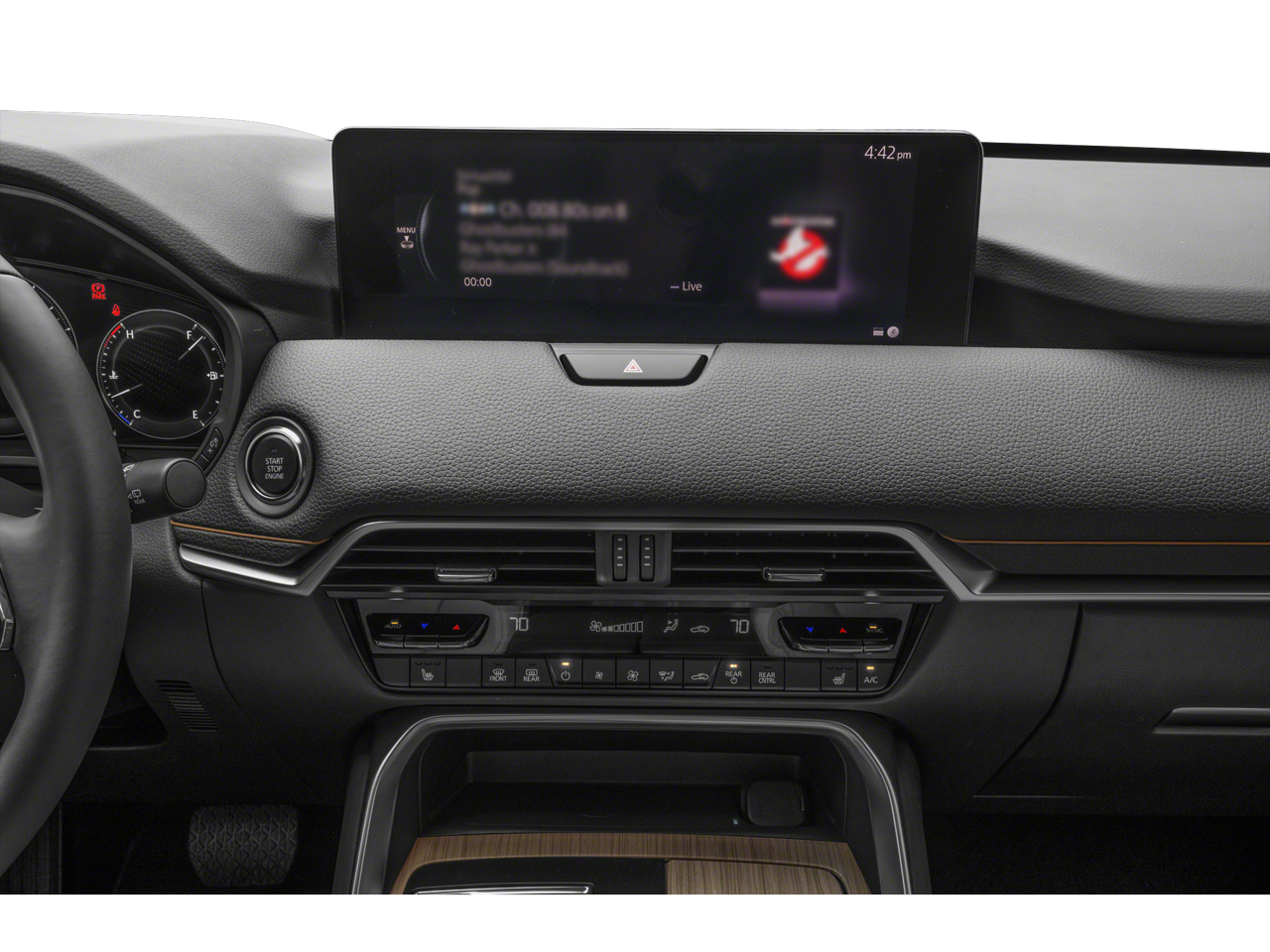 12 Speakers, 3rd row seats: bench, 4-Wheel Disc Brakes, ABS brakes, Air Conditioning, Alloy wheels, AM/FM radio: SiriusXM, Artisan Red Premium Paint Charge, Auto High-beam Headlights, Auto-dimming door mirrors, Auto-dimming Rear-View mirror, Automatic temperature control, Black Liftgate Garnish, Brake assist, Bumpers: body-color, Cargo Blocks, Compass, Delay-off headlights, Driver door bin, Driver vanity mirror, Dual front impact airbags, Dual front side impact airbags, E911 Automatic Emergency Notification, Electronic Stability Control, Emergency communication system: MAZDA CONNECT, Exterior Parking Camera Rear, Four wheel independent suspension, Front anti-roll bar, Front Bucket Seats, Front Center Armrest w/Storage, Front dual zone A/C, Front reading lights, Fully automatic headlights, Garage door transmitter: HomeLink, Heads-Up Display, Heated door mirrors, Heated front seats, Heated rear seats, Heated steering wheel, Heated/Ventilated Front Bucket Seats, Illuminated entry, Infotainment System Voice Command, Knee airbag, Leather Seat Trim, Leather Shift Knob, Leather steering wheel, Low tire pressure warning, Mazda Connected Services, Mazda Online Navigation, Memory seat, Navigation system: MAZDA CONNECT, Occupant sensing airbag, Outside temperature display, Overhead airbag, Overhead console, Panic alarm, Passenger door bin, Passenger vanity mirror, Power door mirrors, Power driver seat, Power Liftgate, Power moonroof, Power passenger seat, Power steering, Power windows, Radio Broadcast Data System Program Information, Radio data system, Radio: : AM/FM w/HD/Bose 12-Speaker Sound System, Rain sensing wipers, Rear air conditioning, Rear anti-roll bar, Rear reading lights, Rear seat center armrest, Rear window defroster, Rear window wiper, Remote keyless entry, SMS Text Msg Audio Delivery and Reply, Speed control, Speed-sensing steering, Split folding rear seat, Spoiler, Steering wheel mounted audio controls, Tachometer, Telescoping steering wheel, Tilt steering wheel, Traction control, Trip computer, Turn signal indicator mirrors, Variably intermittent wipers, Ventilated front seats, Wheels: 21 x 9.5J Aluminum Alloy with Black Metal Finish.