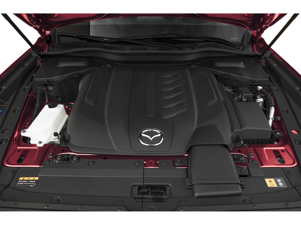 12 Speakers, 2nd-Row Captain's Chairs, 3rd row seats: bench, 4-Wheel Disc Brakes, ABS brakes, Air Conditioning, Alloy wheels, AM/FM radio: SiriusXM, Auto High-beam Headlights, Auto-dimming door mirrors, Auto-dimming Rear-View mirror, Automatic temperature control, Black Liftgate Garnish, Brake assist, Bumpers: body-color, Cargo Blocks, Compass, Cross Bars - Black, Delay-off headlights, Driver door bin, Driver vanity mirror, Dual front impact airbags, Dual front side impact airbags, E911 Automatic Emergency Notification, Electronic Stability Control, Emergency communication system: MAZDA CONNECT, First Aid Kit, Four wheel independent suspension, Front anti-roll bar, Front Bucket Seats, Front Center Armrest w/Storage, Front dual zone A/C, Front reading lights, Fully automatic headlights, Garage door transmitter: HomeLink, Heads-Up Display, Heated door mirrors, Heated front seats, Heated rear seats, Heated steering wheel, Heated/Ventilated Front Bucket Seats, Illuminated entry, Infotainment System Voice Command, Knee airbag, Leather Shift Knob, Leather steering wheel, Low tire pressure warning, Mazda Connected Services, Mazda Online Navigation, Memory seat, Nappa Leather Seat Trim, Navigation system: MAZDA CONNECT, Occupant sensing airbag, Outside temperature display, Overhead airbag, Overhead console, Panic alarm, Passenger door bin, Passenger vanity mirror, Power door mirrors, Power driver seat, Power Liftgate, Power moonroof, Power passenger seat, Power steering, Power windows, Radio Broadcast Data System Program Information, Radio data system, Rain sensing wipers, Rear air conditioning, Rear anti-roll bar, Rear reading lights, Rear seat center armrest, Rear window defroster, Rear window wiper, Remote keyless entry, Roadside Assistance Kit, Security system, Speed control, Speed-sensing steering, Split folding rear seat, Spoiler, Steering wheel memory, Steering wheel mounted audio controls, Tachometer, Telescoping steering wheel, Tilt steering wheel, Traction control, Trip computer, Turn signal indicator mirrors, Variably intermittent wipers, Ventilated front seats.