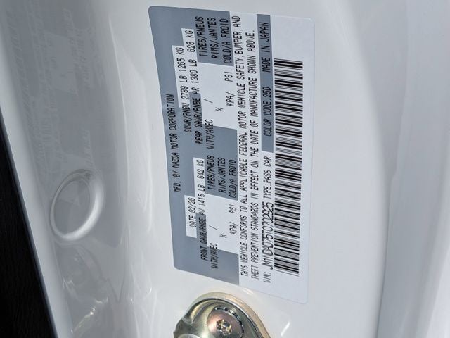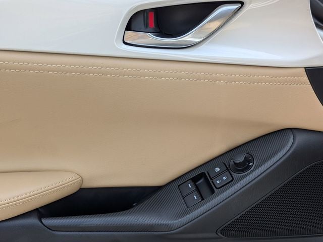 4-Wheel Disc Brakes, 9 Speakers, ABS brakes, Air Conditioning, Alloy wheels, AM/FM radio: SiriusXM, AppLink/Apple CarPlay and Android Auto, Auto High-beam Headlights, Auto-dimming door mirrors, Auto-dimming Rear-View mirror, Automatic temperature control, Black Lug Nuts and Black Wheel Locks, Brake assist, Bumpers: body-color, Cargo Net, Convertible roof lining, Convertible roof wind blocker, Delay-off headlights, Driver vanity mirror, Dual front impact airbags, Dual front side impact airbags, Electronic Stability Control, Emergency communication system: MAZDA CONNECT, Exterior Parking Camera Rear, Four wheel independent suspension, Front anti-roll bar, Front Bucket Seats, Front Center Armrest, Fully automatic headlights, Garage door transmitter: HomeLink, Glass rear window, Heated door mirrors, Heated Front Bucket Seats, Heated front seats, Illuminated entry, Leather Shift Knob, Leather Upholstery, Low tire pressure warning, MAZDA CONNECT Infotainment System, Nappa Leather Upholstery, Navigation System, Occupant sensing airbag, Outside temperature display, Panic alarm, Passenger vanity mirror, Power door mirrors, Power steering, Power windows, Radio data system, Radio: Bose Audio System with Audiopilot, Rain sensing wipers, Rear anti-roll bar, Rear window defroster, Remote keyless entry, Snowflake White Pearl and Tan Nappa Leather Charge, Speed control, Speed-sensing steering, Sport steering wheel, Steering wheel mounted audio controls, Tachometer, Telescoping steering wheel, Tilt steering wheel, Traction control, Trip computer, Variably intermittent wipers, Wheels: 17 x 7 Aluminum Alloy with Black Metallic Finish.