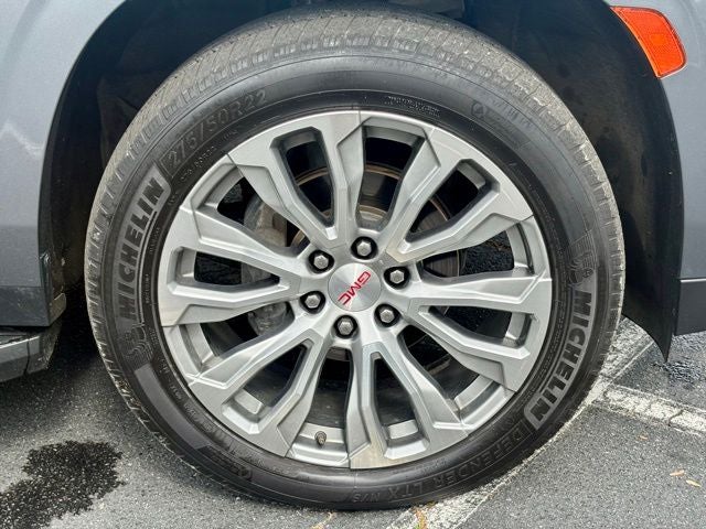 4WD, 14 Speakers, 15 Diagonal Multi-Color Head-Up Display, 2 Presets For Outside Rearview Mirrors, 3 Years of GMC Connected Services, 3.23 Rear Axle Ratio, 3rd Row 60/40 Power-Folding Split-Bench Seat, 3rd row seats: split-bench, 4-Wheel Disc Brakes, ABS brakes, Adaptive suspension, Air Conditioning, Alloy wheels, AM/FM radio: SiriusXM with 360L, AM/FM Stereo, Apple CarPlay/Android Auto, Auto High-beam Headlights, Auto-dimming door mirrors, Auto-dimming Rear-View mirror, Auto-leveling suspension, Automatic Emergency Braking, Automatic Stop/Start, Automatic temperature control, Bodyside moldings, Bose 14-Speaker Surround w/CenterPoint, Brake assist, Bright Front & Rear Door Sill Plates, Bumpers: body-color, Chrome Door Handles w/Body-Color Strip, Compass, Delay-off headlights, Driver door bin, Driver vanity mirror, Dual Exhaust System, Dual front impact airbags, Dual front side impact airbags, Dual-Pane Panoramic Power Sunroof, Electronic Stability Control, Emergency communication system: OnStar and GMC Connected Services capable, Floor Console, Following Distance Indicator, Forward Collision Alert, Four wheel independent suspension, Front & Rear Park Assist, Front anti-roll bar, Front Bucket Seats, Front Center Armrest, Front dual zone A/C, Front fog lights, Front Pedestrian Braking, Front reading lights, Fully automatic headlights, Galvano Bodyside Moldings, Garage door transmitter, Hands-Free Power Programmable Rear Liftgate, HD Surround Vision, Heads-Up Display, Heated & Ventilated Driver & Front Passenger Seats, Heated 2nd Row Outboard Position Seats, Heated door mirrors, Heated Driver & Front Passenger Seats, Heated front seats, Heated rear seats, Heated Steering Wheel, Heated steering wheel, Hill Descent Control, Illuminated entry, Inside Rear-View Auto-Dimming Mirror, IntelliBeam Automatic High Beam On/Off, Lane Change Alert w/Side Blind Zone Alert, Lane Keep Assist w/Lane Departure Warning, Leather steering wheel, License Plate Front Mounting Package, Low tire pressure warning, Magnetic Ride Control Suspension, Memory seat, Navigation System, Not Equipped w/4-Way Driver & Fr Pass Pwr Lumbar, Not Equipped w/Steering Column Lock, Occupant sensing airbag, Outside Heated Power-Adjustable Mirrors, Outside temperature display, Overhead airbag, Overhead console, Panic alarm, Passenger door bin, Passenger vanity mirror, Perforated Leather Seating Surfaces, Power door mirrors, Power driver seat, Power Liftgate, Power passenger seat, Power Release 2nd Row Bucket Seats, Power steering, Power Tilt & Telescopic Steering Column, Power windows, Preferred Equipment Group 5SA, Rain sensing wipers, Rear air conditioning, Rear anti-roll bar, Rear Cross Traffic Alert, Rear Pedestrian Alert, Rear reading lights, Rear window defroster, Rear window wiper, Remote keyless entry, Roof rack: rails only, Safety Alert Seat, Security system, SiriusXM w/360L, Speed control, Speed-sensing steering, Split folding rear seat, Spoiler, Start/Stop System Disable Button, Steering wheel memory, Steering wheel mounted audio controls, Tachometer, Telescoping steering wheel, Tilt steering wheel, Traction control, Trip computer, Turn signal indicator mirrors, Universal Home Remote, Variably intermittent wipers, Ventilated front seats, Voltmeter, Wheel Locks (Set of 4) (LPO), Wheels: 20 x 9 6-Spoke Polished Aluminum, Wheels: 22 x 9 Bright Machined Aluminum, Wireless Charging, 4WD. Recent Arrival!