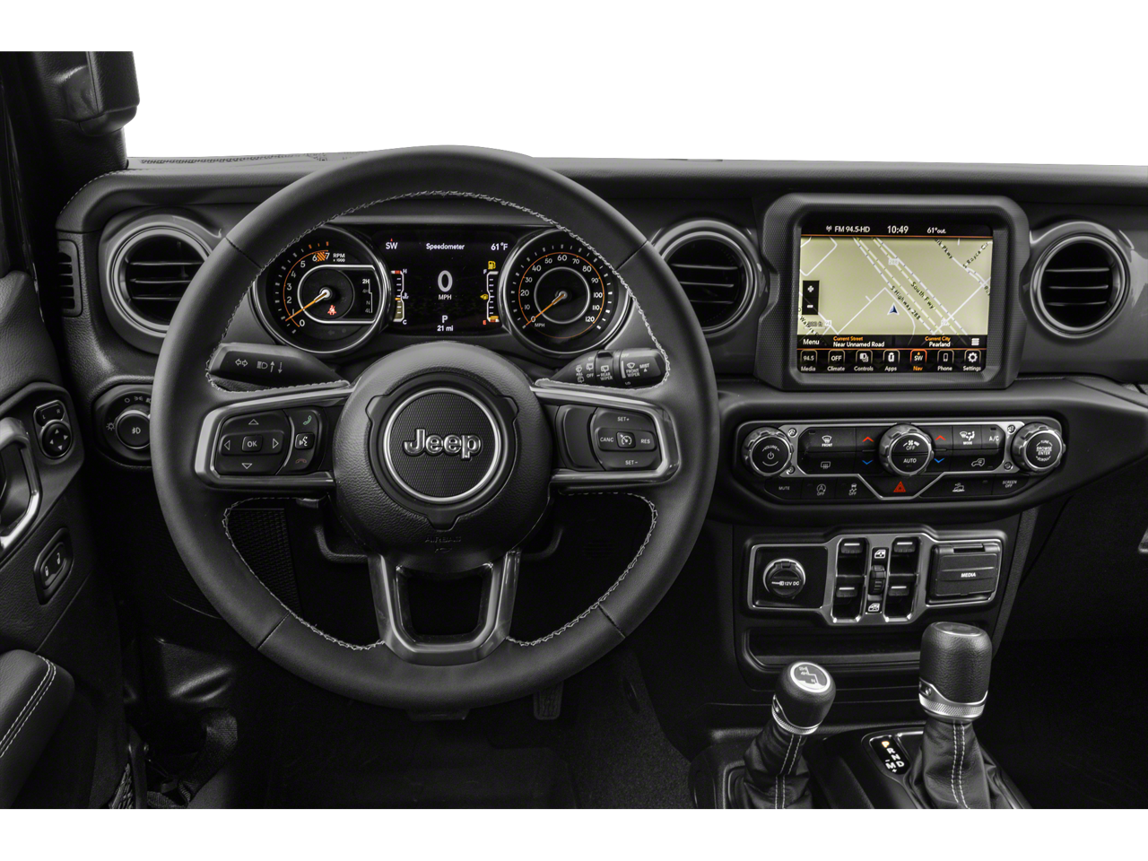 3.45 Overall Top Gear Ratio, 4-Wheel Disc Brakes, 9 Speakers, ABS brakes, Air Conditioning, Alloy wheels, AM/FM radio: SiriusXM, Apple CarPlay/Android Auto, Auto-dimming Rear-View mirror, Automatic temperature control, Aux Battery, Black 3-Piece Hard Top, Brake assist, Cloth Low-Back Bucket Seats, Compass, Delay-off headlights, Driver door bin, Driver vanity mirror, Dual Door Group w/Premium Uppers, Dual front impact airbags, Dual front side impact airbags, Electronic Stability Control, Emergency communication system: SiriusXM Guardian, Freedom Panel Storage Bag, Front anti-roll bar, Front Bucket Seats, Front Center Armrest w/Storage, Front dual zone A/C, Front fog lights, Front reading lights, Fully automatic headlights, Garage door transmitter, Half Doors w/Uppers, Heated door mirrors, Heavy Duty Suspension w/Gas Shocks, Illuminated entry, Integrated roll-over protection, Low tire pressure warning, Navigation System, No Soft Top, Non-Lock Fuel Cap w/o Discriminator, Occupant sensing airbag, Outside temperature display, Panic alarm, ParkView Rear Back-Up Camera, Passenger door bin, Passenger vanity mirror, Power door mirrors, Power steering, Power windows, Quick Order Package 25G Sahara, Radio data system, Radio: Uconnect 4C Nav w/8.4 Display, Rear anti-roll bar, Rear reading lights, Rear Window Defroster, Rear Window Wiper/Washer, Remote keyless entry, Security system, Side Steps, Speed control, Split folding rear seat, Steering wheel mounted audio controls, Stop-Start Dual Battery System, Tachometer, Telescoping steering wheel, Tilt steering wheel, Traction control, Trip computer, Variably intermittent wipers, Voltmeter, Wheels: 18 x 7.5 Machined w/Gray Spokes, Wheels: 18 x 7.5 Polished w/Gray Spokes (DISC). Recent Arrival!